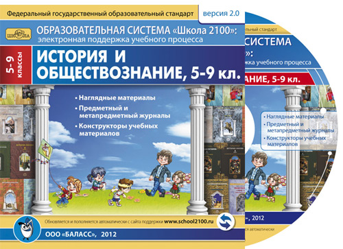Образовательный комплекс Образовательная система «Школа 2100»: электронная поддержка учебного процесса. История и обществознание, 5-9 кл. Электронное приложение в помощь учителю.