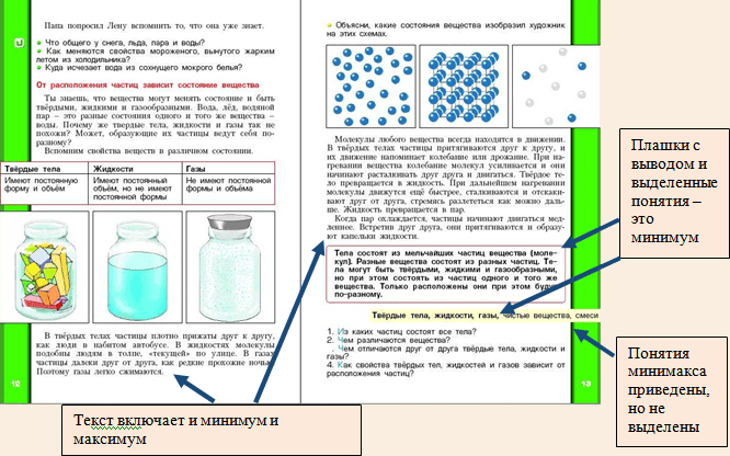 Все остальные понятия учебника, которые рассмотрены в тексте, но не отражены в требованиях, относятся к максимуму. Их не только не обязательно знать, но и не обязательно включать в материал урока.